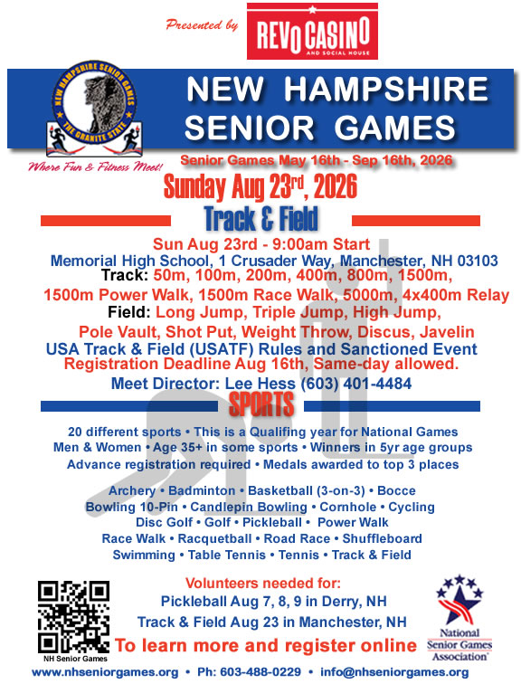 - Only athletes 50+ by end of this calendar year, qualify for the following year's National Senior Games.